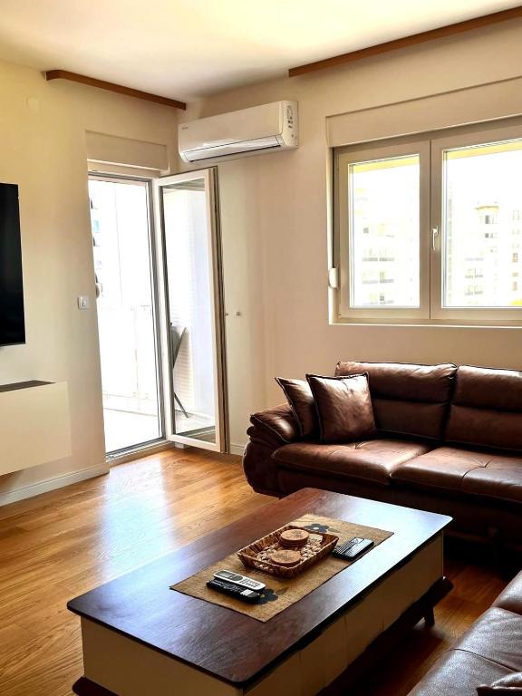 The well-fitted kitchen features a stovetop, a refrigerator, a dishwasher and kitchenware. The spacious air-conditioned apartment offers a flat-screen TV, a washing machine, a private entrance, a wardrobe as well as sea views. The unit offers 3 beds.