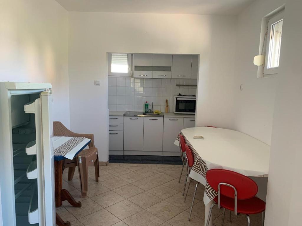 čajna kuhinja, frižider, mašina za pranje veša, kuhinja, posuđe, sto za ručavanje