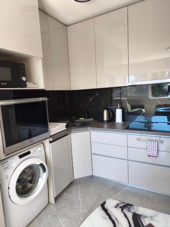 frižider, mikrotalasna rerna, mašina za pranje sudova, mašina za pranje veša, kuhinja, električno kuvalo, ploča za kuvanje, toster, sto za ručavanje, čaše za vino