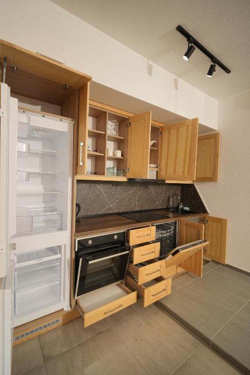 frižider, mikrotalasna rerna, kuhinja, električno kuvalo, posuđe, ploča za kuvanje, aparat za kafu, sto za ručavanje, čaše za vino, mašina za pranje veša, sredstva za čišćenje