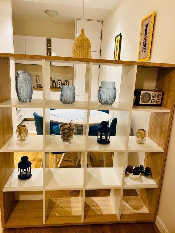 frižider, mašina za pranje sudova, mašina za pranje veša, kuhinja, toster, sredstva za čišćenje, sto za ručavanje, čaše za vino
